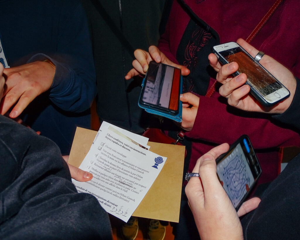 Conçu pour être joué par de grands groupes en simultané, le dispositif ne nécessite aucune préparation préalable de la part des participants et offre une liberté totale de déambulation dans le lieu d’accueil.