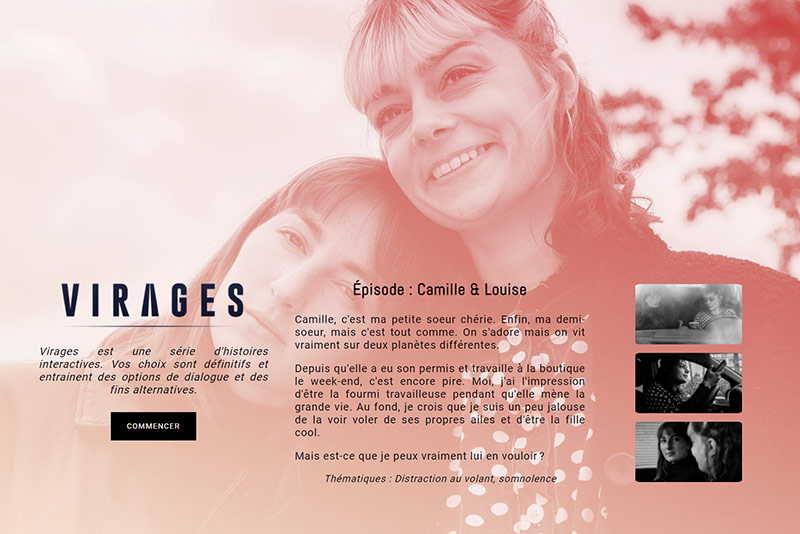 Un jeu sérieux de sensibilisation à la conduite responsable pour l’association Wimoov, sous la forme d’histoires interactives en ligne.